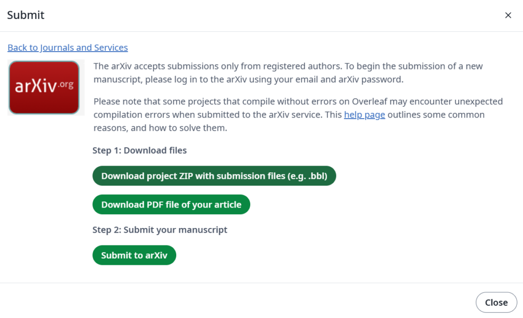 A maneira mais eficiente de submeter seu artigo do Overleaf ao arXiv é usando o recurso de submissão do próprio Overleaf, que gera o arquivo compactado (.zip) no formato correto.