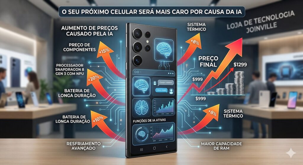Se você está planejando trocar de celular nos próximos meses, prepare o bolso. A era dos “AI Phones” (celulares focados em Inteligência Artificial) chegou, mas ela traz consigo um aumento considerável nos custos de produção que, inevitavelmente, será repassado ao consumidor final.